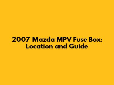 2007 Mazda MPV Fuse Box: Location And Guide
