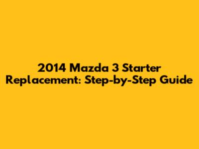 2014 Mazda 3 Starter Replacement: Step-by-Step Guide