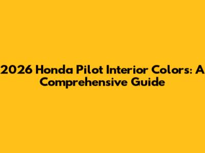 Hey there, car enthusiasts! Let's dive into something exciting: the anticipated 2026 Honda Pilot and, specifically, what's happening inside! We're talking about the interior colors – a crucial part of making your ride feel like home. Choosing the right interior color isn't just about aesthetics; it's about setting the mood, expressing your style, and making sure your car feels just right for those long road trips or daily commutes. So, what can we expect for the 2026 Honda Pilot interior colors? Well, while official details might still be under wraps, we can definitely make some educated guesses and explore what's been trending in the automotive world. I'll break down everything you need to know, from the probable color palettes to the materials and trim options, so you're well-prepared for when the time comes to spec out your new Pilot. Keep in mind, this is all based on current trends, Honda's design language, and a little bit of educated speculation. Let’s get started and explore the potential 2026 Honda Pilot interior colors!
