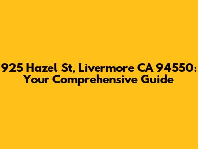 Alright guys, let's dive deep into everything you need to know about 925 Hazel St, Livermore, CA 94550. Whether you're a potential buyer, a curious neighbor, or just someone interested in real estate, this guide will provide you with all the juicy details. We're talking property specifics, neighborhood vibes, and everything in between.