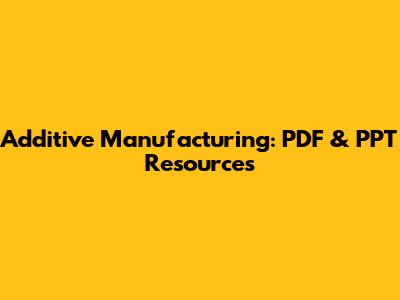 Additive Manufacturing: PDF & PPT Resources