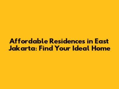 Affordable Residences In East Jakarta: Find Your Ideal Home