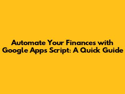 Automate Finance With Google Apps Script: A Quick Guide