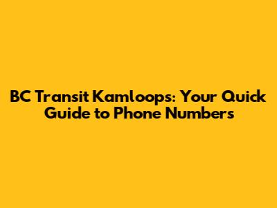 BC Transit Kamloops: Your Quick Guide To Phone Numbers