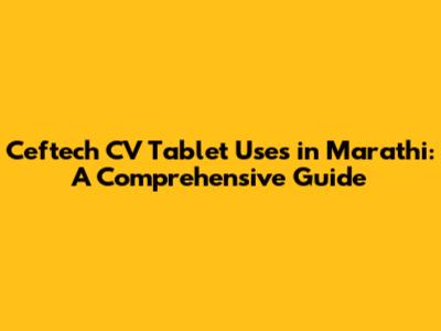 Hey guys! Let's dive into the world of Ceftech CV tablets, specifically looking at how they're used and what they do, all explained in Marathi. This is gonna be a detailed guide, so buckle up! We'll cover everything from the basic stuff to some more in-depth information about this popular medication. Remember, this isn't a substitute for advice from a healthcare professional – always chat with your doctor or pharmacist if you have any questions or before you start taking any new medicine. Ready? Let's get started!