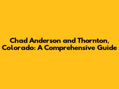 Hey everyone! Let's dive into the world of Chad Anderson and his connection to the awesome city of Thornton, Colorado. This guide is all about giving you the lowdown on who Chad is, what makes Thornton tick, and how these two are linked. Whether you're new to the area, considering a move, or just curious, this is your go-to resource. We're gonna cover everything from Chad's professional background to the ins and outs of Thornton, so buckle up, guys!