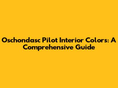 Choosing The Perfect Oschondasc Pilot Interior Colors