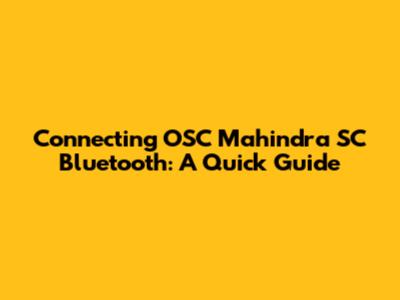Connect OSC Mahindra SC Bluetooth: A Quick Guide