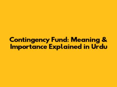 Contingency Fund: Meaning & Importance Explained In Urdu