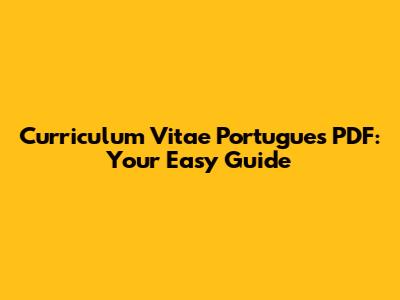 Curriculum Vitae Portugues PDF: Your Easy Guide