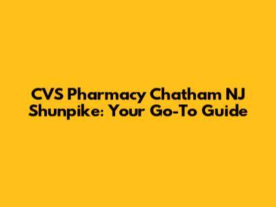 Hey guys! Looking for a reliable pharmacy in Chatham, NJ? Well, look no further! We're diving deep into everything you need to know about the CVS Pharmacy located on Shunpike Road. Whether you're a local or just passing through, this guide will give you the lowdown on what to expect, from services offered to the overall customer experience. Let's get started!