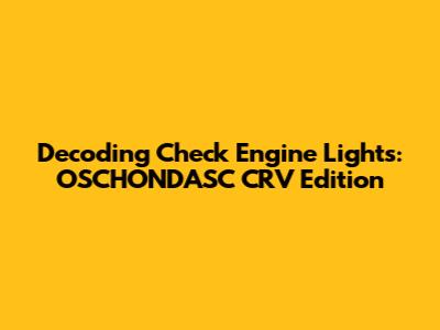 Decoding Check Engine Lights: OSCHONDASC CRV Edition