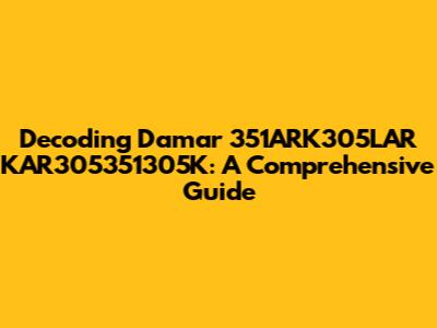Decoding Damar 351ARK305LAR KAR305351305K: A Comprehensive Guide