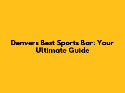 Denver's Best Sports Bar: Your Ultimate Guide