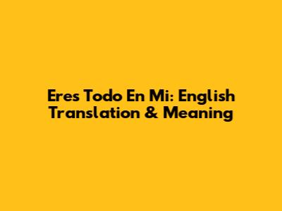 Eres Todo En Mi: English Translation & Meaning