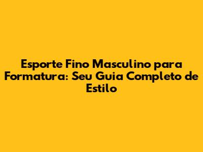 Esporte Fino Masculino Para Formatura: Guia Completo