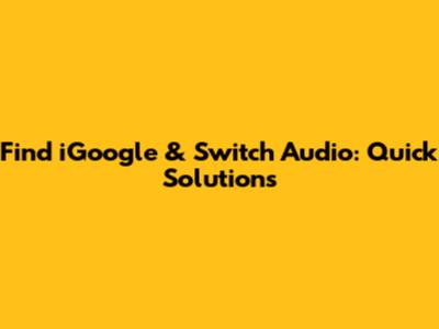 Find IGoogle & Switch Audio: Quick Solutions