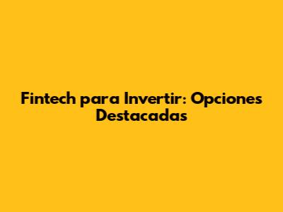 Fintech Para Invertir: Opciones Destacadas