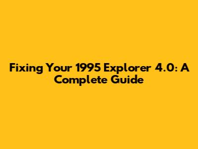 Fixing Your 1995 Explorer 4.0: A Complete Guide