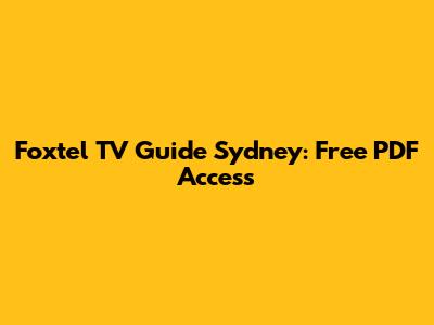 Foxtel TV Guide Sydney: Free PDF Access