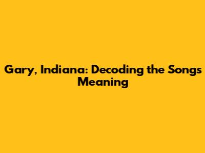 Gary, Indiana: Decoding The Song's Meaning