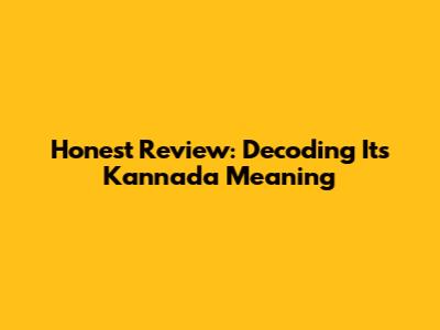 Honest Review: Decoding Its Kannada Meaning