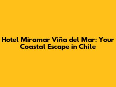 Hey guys! Planning a trip to Chile and dreaming of a seaside escape? Look no further than the Hotel Miramar in Viña del Mar! This iconic hotel offers a perfect blend of history, elegance, and breathtaking ocean views. I'm going to walk you through everything you need to know about this fantastic spot, from its prime location to the luxurious amenities and nearby attractions. Get ready to pack your bags, because you're about to fall in love with the Hotel Miramar and the vibrant city of Viña del Mar!