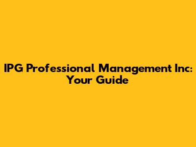 IPG Professional Management Inc: Your Guide