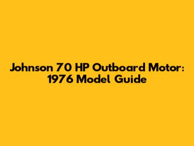 Understanding the 1976 Johnson 70 HP Outboard Motor