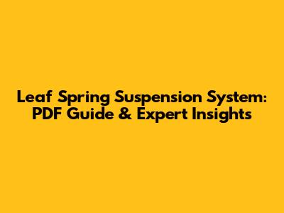 Leaf Spring Suspension: PDF Guide & Expert Insights