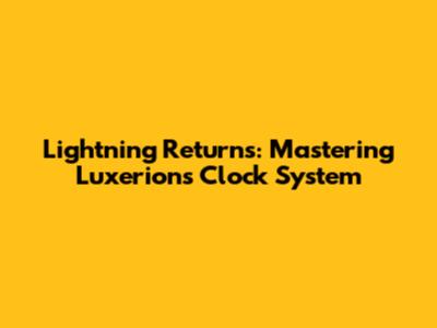 Hey guys! Ever felt like you're constantly racing against the clock? Well, in Lightning Returns: Final Fantasy XIII, that feeling is a core gameplay mechanic. And in the city of Luxerion, the clock is not just ticking, it's practically screaming at you! This guide is your ultimate companion to understanding and conquering the time system in Luxerion, helping you make the most of your precious in-game days and nights. We'll dive deep into how the clock works, how to manage your time effectively, and how to utilize the various features related to time manipulation. Get ready to become a time-bending master and save souls, all while looking fabulous, because, let's face it, Lightning's got style!