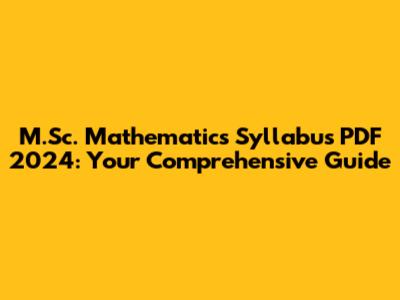 M.Sc. Mathematics Syllabus PDF 2024: Download Now