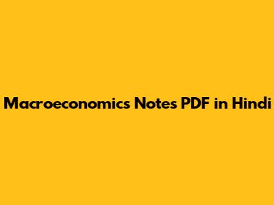 Macroeconomics Notes PDF In Hindi