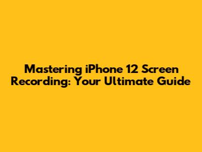 Mastering IPhone 12 Screen Recording: Your Ultimate Guide