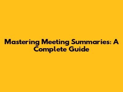 Mastering Meeting Summaries: A Complete Guide