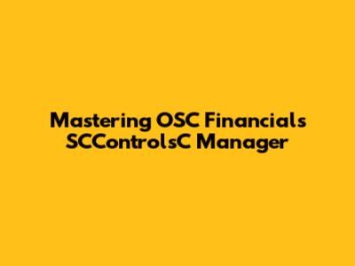 Mastering OSC Financials SCControlsC Manager