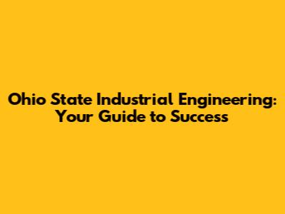 Ohio State Industrial Engineering: A Comprehensive Guide