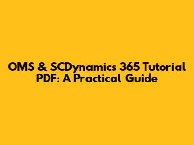 OMS & SCDynamics 365 Tutorial PDF: A Practical Guide