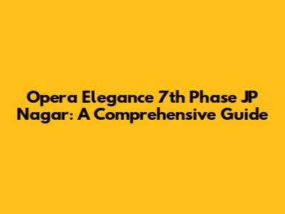Hey there, future homeowner or real estate enthusiast! Let's dive deep into Opera Elegance 7th Phase JP Nagar, shall we? This isn't just another residential project; it's a statement. Situated in the heart of JP Nagar, a prime locality in Bangalore, Opera Elegance offers a blend of luxury, convenience, and modern living that's hard to beat. We're talking about a place where you can unwind in style, enjoy top-notch amenities, and still be connected to the bustling city life. Whether you're considering a move or just curious about this sought-after address, we've got you covered. From the architectural brilliance to the lifestyle offerings and investment potential, we'll explore every aspect to help you make an informed decision. So, grab a coffee, get comfy, and let's explore what makes Opera Elegance such a compelling choice. This guide is designed to give you the full scoop, so you can decide if it is the right choice for you! Get ready to discover everything there is to know about this amazing place.