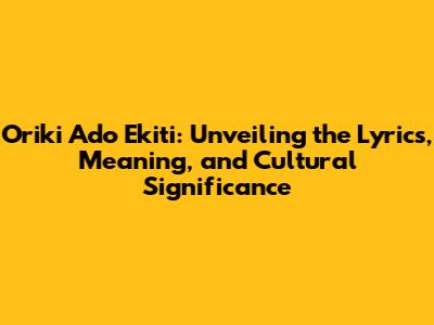 Oriki Ado Ekiti: Lyrics, Meaning, And Cultural Significance