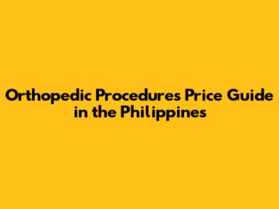 Orthopedic Procedures Price Guide In The Philippines