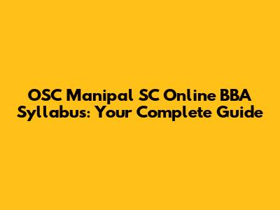 OSC Manipal SC Online BBA Syllabus: A Comprehensive Guide