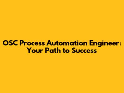 OSC Process Automation Engineer: Your Path To Success