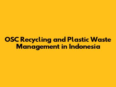 OSC Recycling: Plastic Waste Solutions In Indonesia
