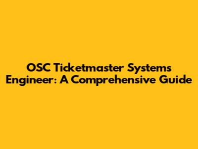 OSC Ticketmaster Systems Engineer: A Comprehensive Guide