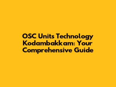 Hey guys! Welcome to the ultimate guide on OSC Units Technology in Kodambakkam. If you're scratching your head about what that even means, don't sweat it. We're diving deep into everything you need to know about this fascinating technology and how it's making waves in the Kodambakkam area. Let's get started!