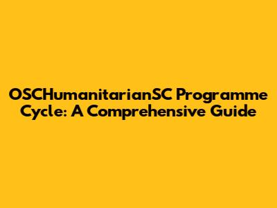 OSCHumanitarianSC: A Comprehensive Programme Cycle Guide
