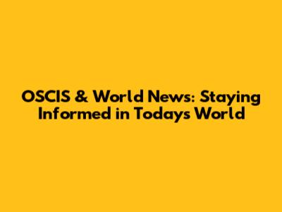 OSCIS & World News: Staying Informed In Today's World