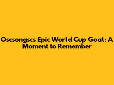 Oscsongsc's Epic World Cup Goal: A Moment To Remember