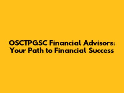 OSCTPGSC Financial Advisors: Your Path To Financial Success